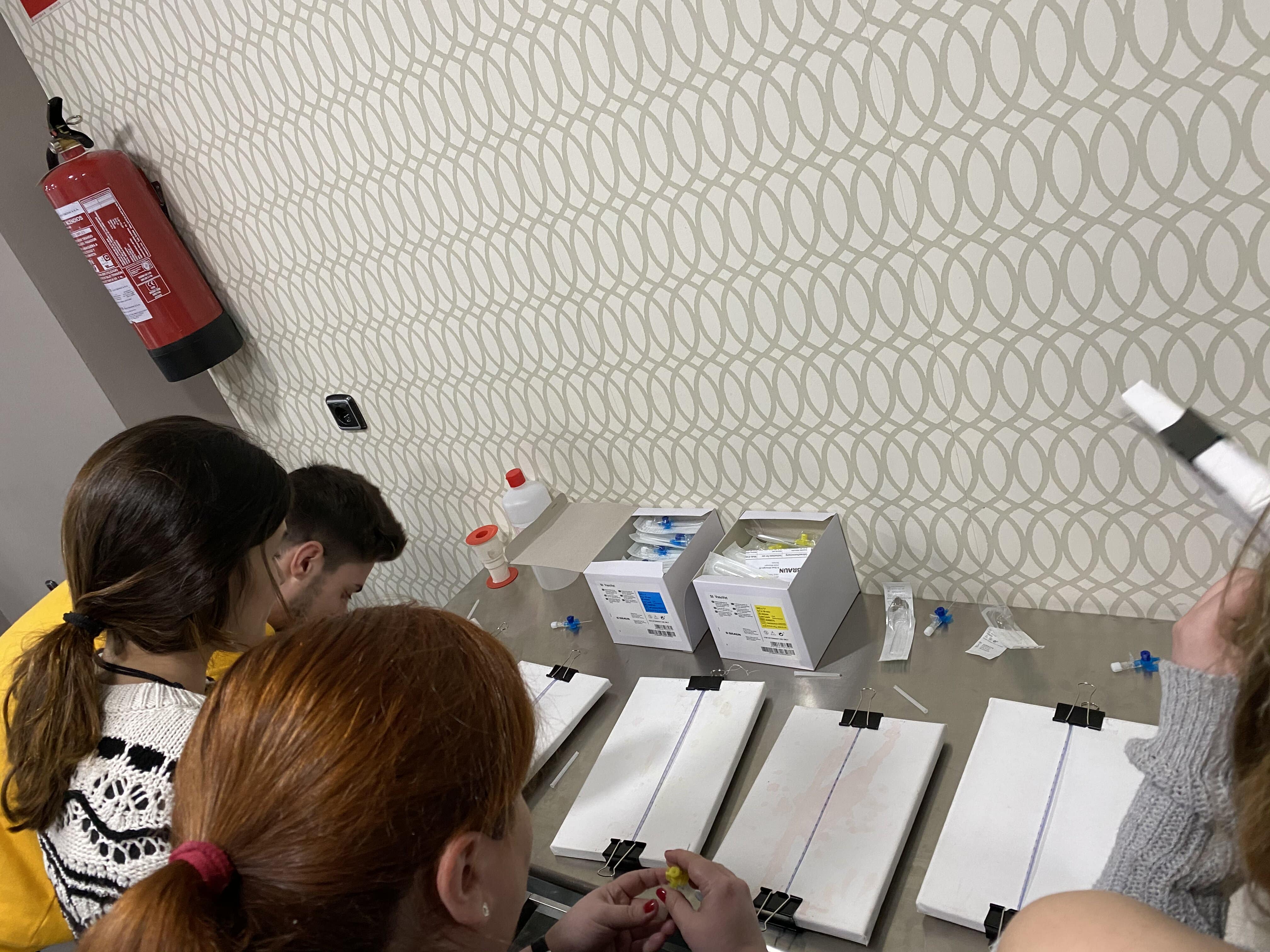 Antes de todo este lío, estuvimos empezando a practicar cómo sacar sangre a nuestros bichines, aquí podéis ver algunas fotos. Es un taller bastante divertido, nos ayuda a soltar un poco de mano antes de llegar a la vida real del hospital. En unas semanas tendremos de nuevo prácticas de extracción de sangre en pacientes reales, y como cada año lo haremos aportando nuestro granito de arena, con perros que necesitan hacerse un chequeo analítico de protectoras de Granada. ¡Desde luego siempre es un día emocionante! ¡Os enseñaremos las fotos próximamente!